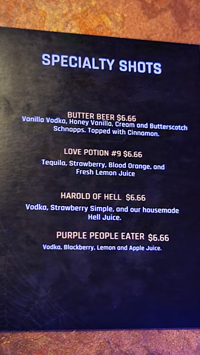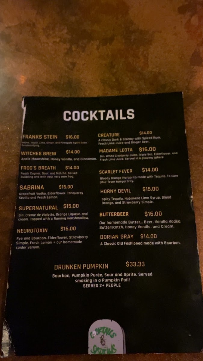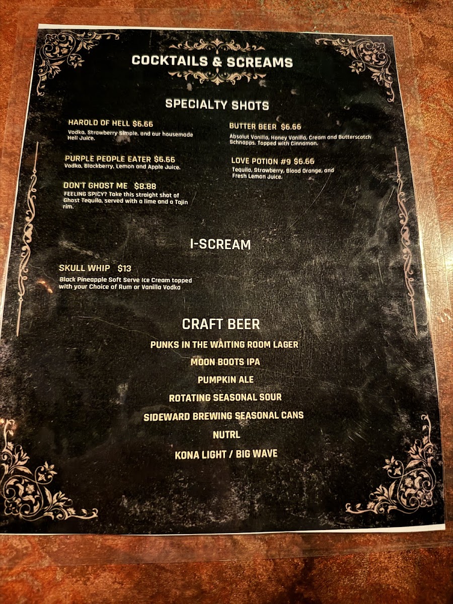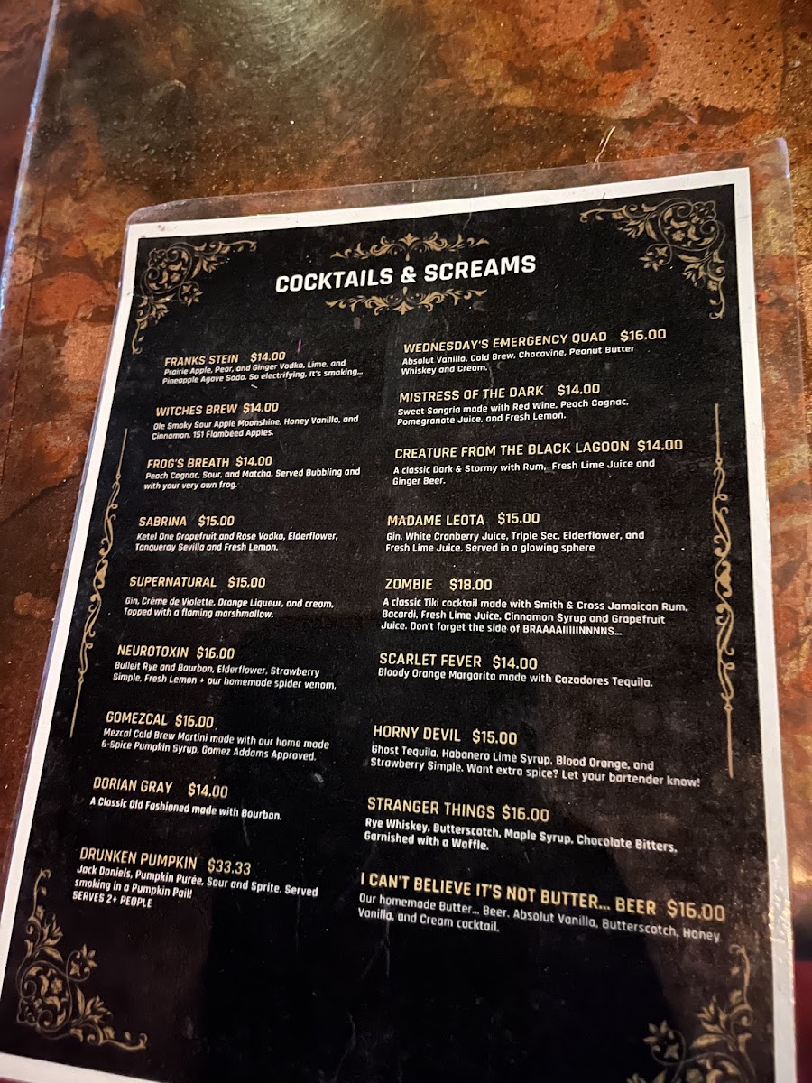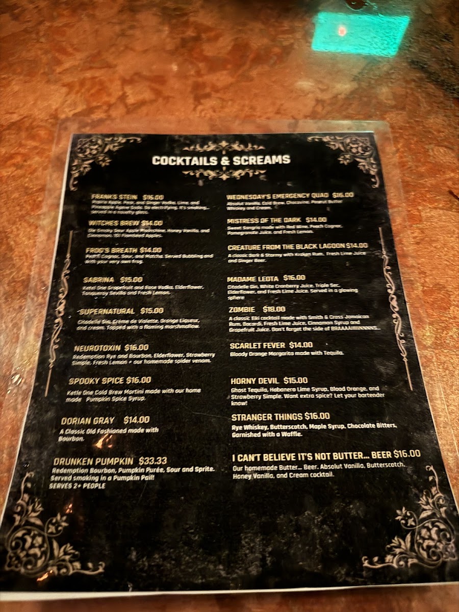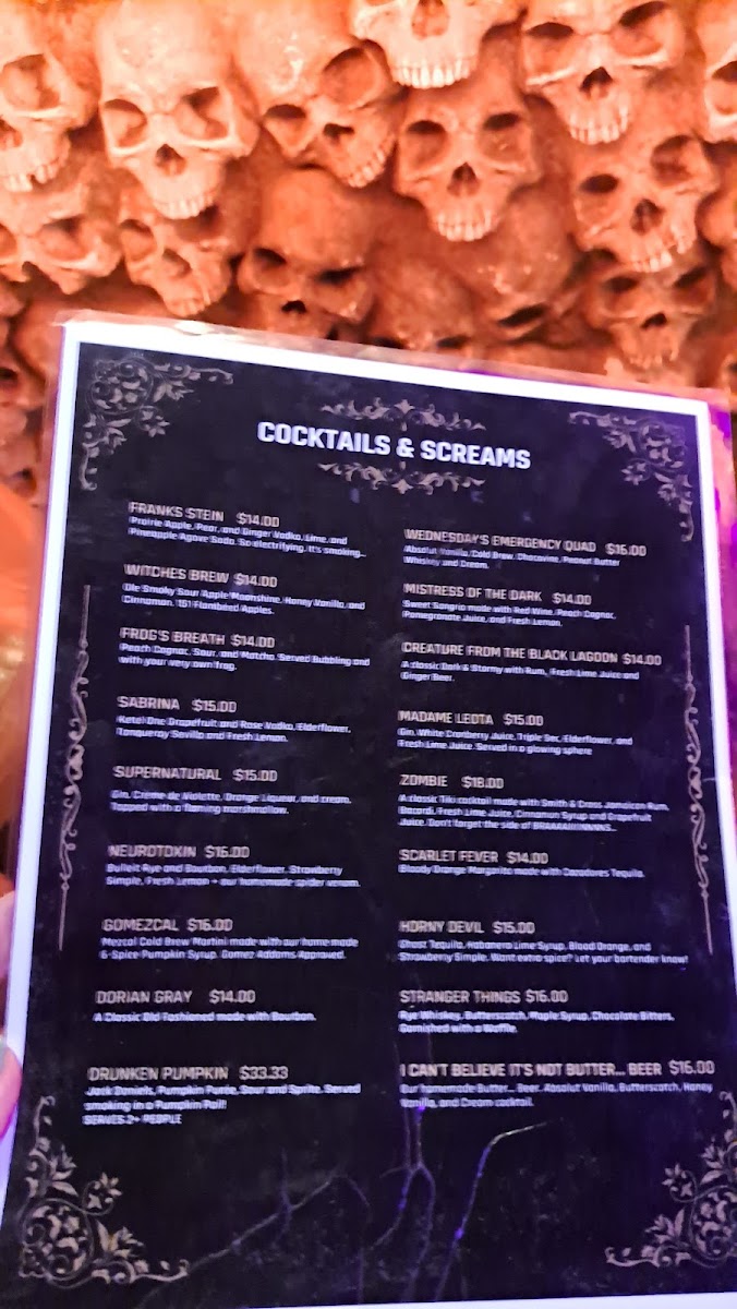 Cocktails & Screams Menu
